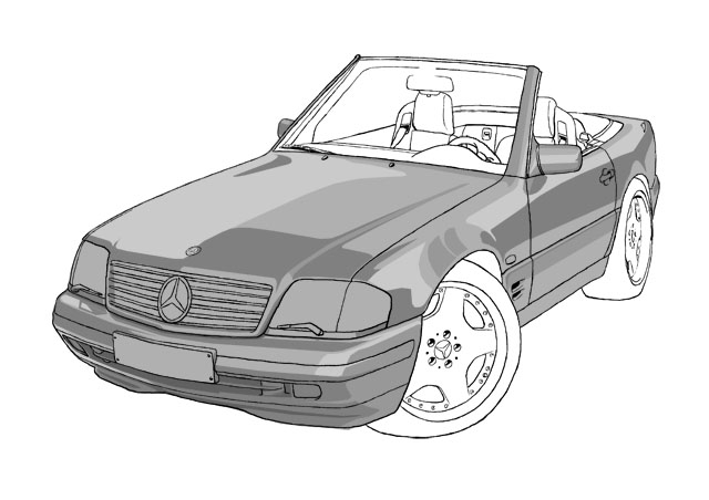 이어지는 그림은 ‘자동차생활’ 2007년 8월호에 실었던 메르세데스 벤츠 SL500(R129) 그림의 제작단계입니다.