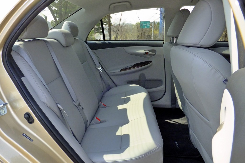 코롤라는 판매지역에 따른 디자인과 보디 스타일, 파워트레인 구성을 일일이 따지면 파생차종을 일일이 세기 힘들 정도로 다양한 모습으로 나오고 있는 글로벌 카다. 물론 국내에는 미국형 모델에 가까운 4도어 세단 한 가지만 들어온다. 겉모습은 전형적인 3박스 구성이다. 전반적인 스타일은 윗급인 캠리를 고스란히 축소해 놓은 느낌이다. 앞뒤 램프와 범퍼 등에 장식적인 요소가 있지만 화려하지 않고, 세부에 치중하는 일본차 특유의 복잡한 디자인 요소가 적어 부담스럽지 않다. 간단히 말해 보수적인 스타일이다. 앞이나 뒤에서 보면 실제보다 차체가 커 보여 중형차에 가까운 존재감을 느낄 수 있다. 평범한 5스포크 알루미늄 휠도 16인치로 절대적인 크기는 결코 작지 않지만 부푼 차체 때문에 커 보이지 않는다. 해치백과 공유하는 플랫폼에 더해진 트렁크는 차급에 비하면 크기가 넉넉하다.
