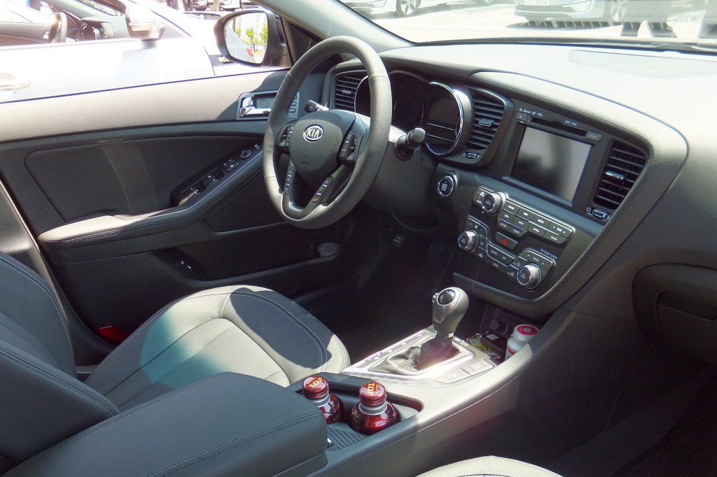 실내에서도 하이브리드 시스템 때문에 차에 탄 사람이 손해 보는 부분은 없다. 장비와 공간 모두 여느 K5와 다를 바 없다. 오히려 휘발유 모델 대비 업그레이드된 부분들이 눈을 즐겁게 한다. 슈퍼비전 계기판 가운데에는 일반 K5보다 큰 4.2인치 LCD 화면이 있어 다양한 주행관련 정보를 보여준다. 대시보드 중앙의 내비게이션 화면도 하이브리드 전용 화면이 있다. 주행상태의 친환경 정도가 두 가지(ECO 레벨)로 표시되고, 시스템의 에너지 흐름도와 연비정보도 확인할 수 있다. 일반 K5에서 피아노 블랙 그레인으로 처리되는 부분은 카본 느낌의 장식으로 바뀌었다. 특별하다기보다 고급화되었다는 느낌이 크다.