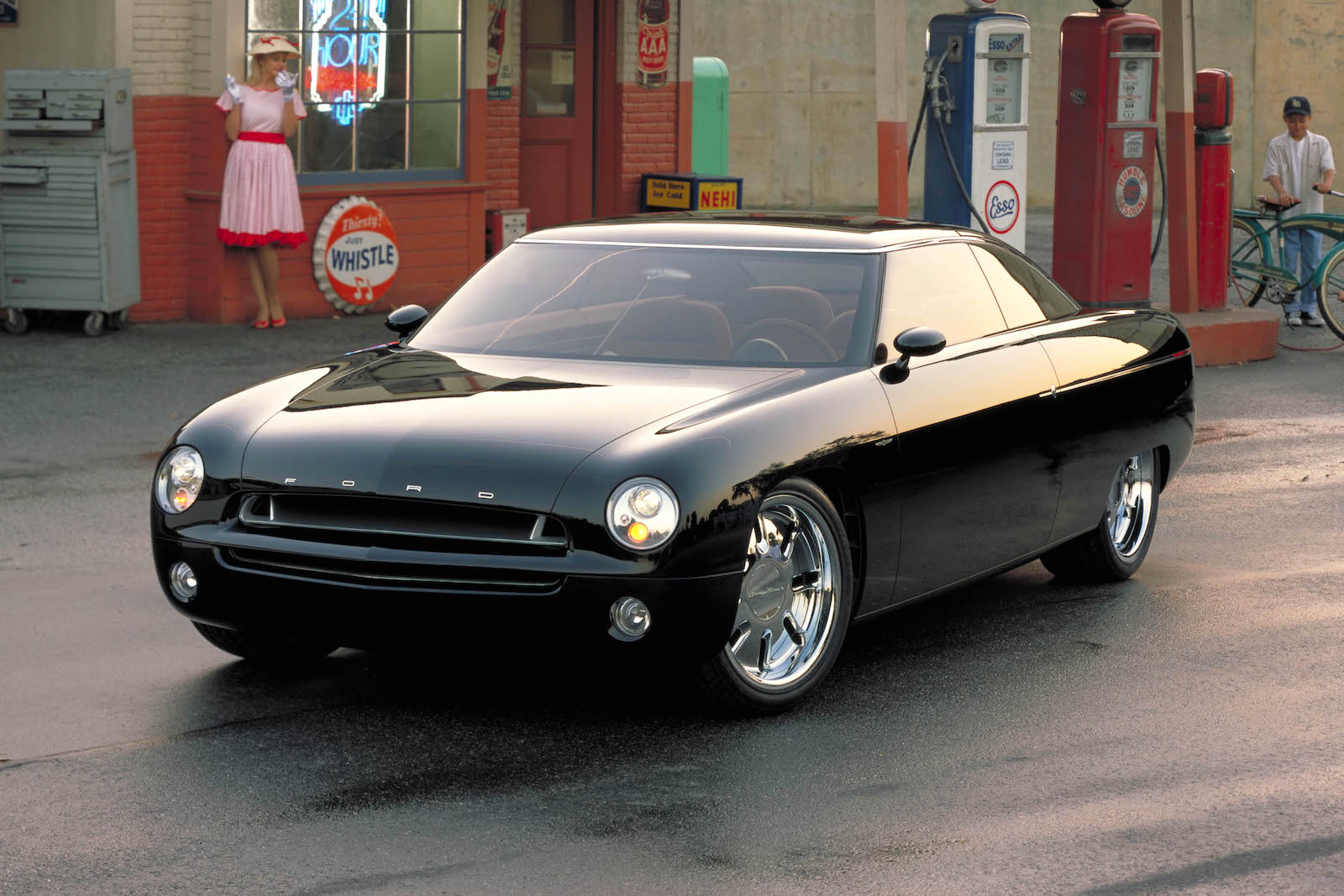 2001년 디트로이트 모터쇼에 등장한 포드 포티나인 컨셉트카는 디자인 면에서 호평을 얻은 1949년형 포드의 디자인을 현대적으로 재해석한 차였다. 레트로 디자인이 크게 유행했고, 이를 적극적으로 추진했던 당시의 포드는 포티나인 컨셉트카를 레트로 디자인이 과연 소비자에게 충분한 매력을 느끼게 할 지 점쳐보는 계기로 삼았다. 재규어와 링컨이 공유한 뒷바퀴굴림 플랫폼을 기본으로 제작되었고, V8 3.9L 엔진으로 뒷바퀴를 굴렸다. 쿠페와 컨버터블의 두 가지 버전으로 제작된 것도 특이했다. 쿠페는 지붕에서 트렁크 앞까지 이어지는 통유리가 눈길을 끌었다. 겉모습만큼이나 실내 디자인도 원작의 흐름을 충실히 반영했다. 넓은 실내는 매우 단순하게 구성했고, 시트 디자인도 옛 스타일을 그대로 살렸다. 디자인에 대한 반응은 좋았지만, 포드는 엉뚱하게도 이 디자인 대신 같은 플랫폼을 활용해 선더버드를 부활시키는 길을 선택했다.