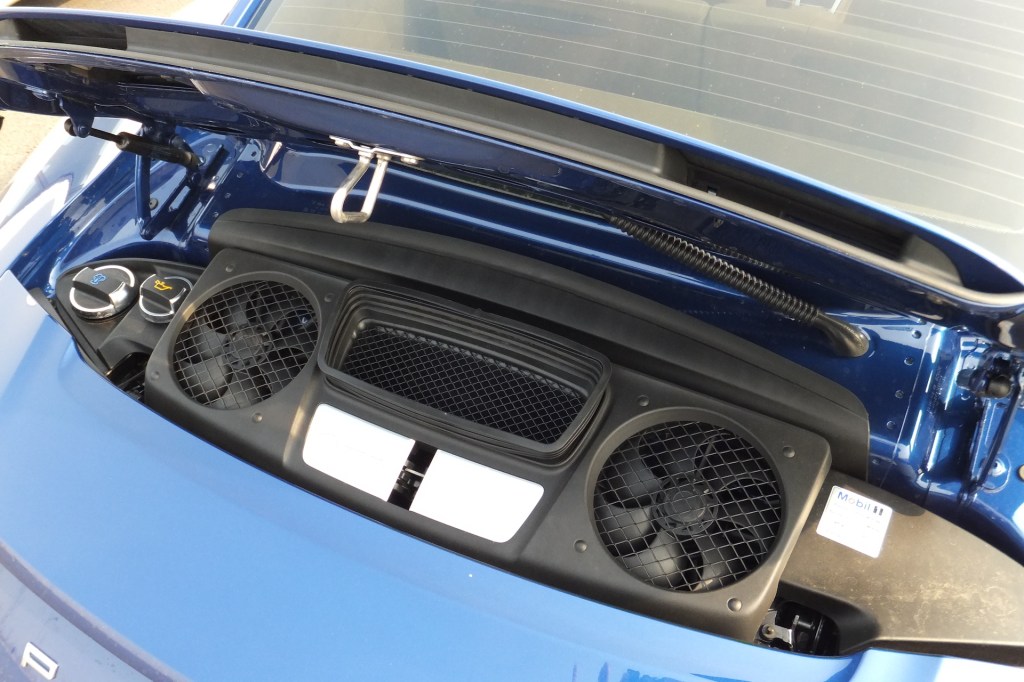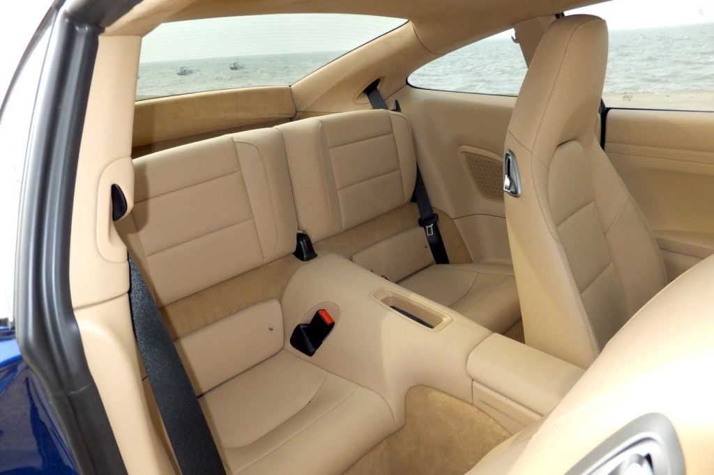 시트는 완전 전동조절식이다. 낮게 깔린 좌석은 앉은키가 큰 필자에게도 충분한 머리 공간을 만들어준다. 쿠션은 스포츠카로는 적당히 너그럽지만 몸을 잡아주는 느낌은 충분히 스포티하다. 차체 크기에 비하면 실내 폭이 좁은 편이지만 공간적으로는 썩 답답하지 않다. 물론 뒷좌석은 무릎공간이 약간 넓어진 것은 사실이지만 정도가 미미해서 여전히 다 큰 어른이 앉는 것은 무리다. 헤드레스트 없이 위쪽 절반만 앞으로 접히는 뒷좌석 등받이는 초대 911로부터 이어받은 유전자를 역설적으로 드러낸다.