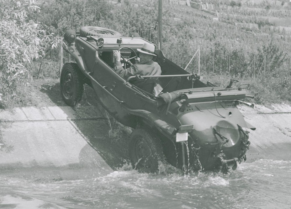 우여곡절 끝에 이 차는 폭스바겐 개발을 뒷받침한 나치 산하단체의 문화 선전조직인 ‘기쁨의 힘(Kraft durch Freude)’의 머리글자를 따 KdF 바겐이라는 이름으로 완성됩니다. 그리고 지금의 볼프스부르크에 KdF 바겐을 생산하겠다는 명목으로 공장을 짓죠. 하지만 나치 정권이 존재했던 기간에 이 차를 손에 넣을 수 있었던 독일 국민은 없었습니다. 1939년에 제2차 세계대전이 일어났기 때문이죠. 나치 정권은 국민들이 KdF 바겐을 구입할 수 있도록 일종의 적금 프로그램을 운영했는데, 적금으로 모인 자금은 KdF 바겐이 아니라 군수물자를 생산하는 데 활용됩니다. 그리고 볼프스부르크의 공장에서는 KdF 바겐의 설계를 응용한 타입 82 퀴벨바겐과 타입 166 슈빔바겐(‘카 북’ 112쪽) 등 군용차가 생산되었구요.
