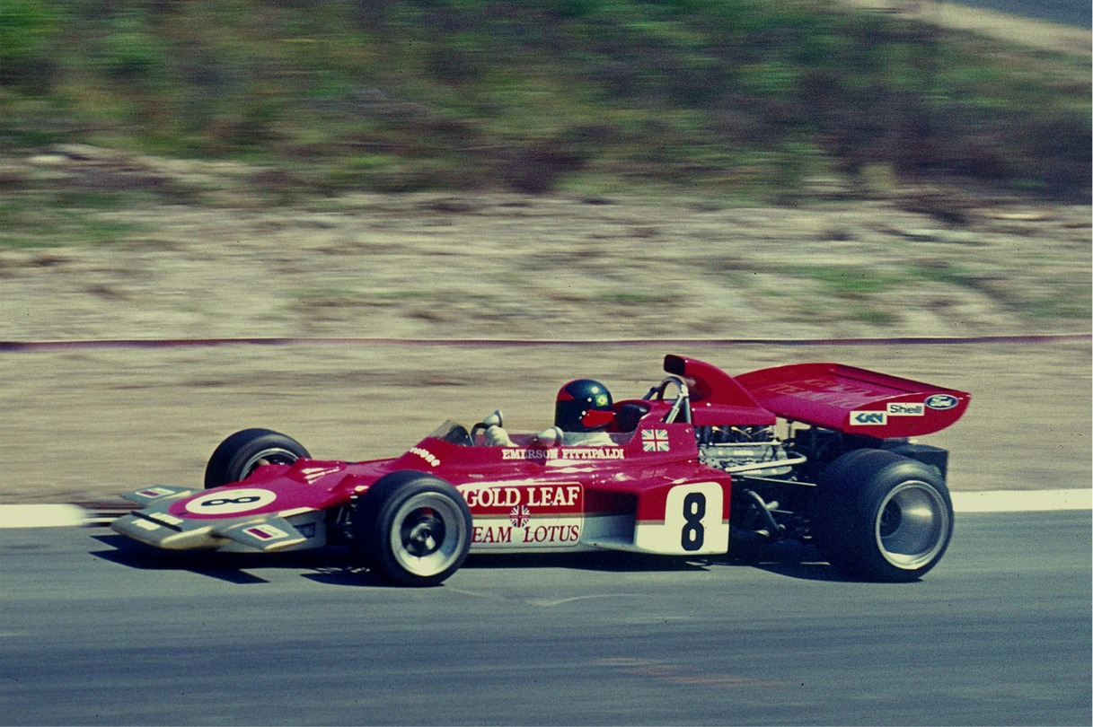 그 가운데 1970년대로 접어들며 새로운 모습으로 선보인 경주차가 타입 72(‘카 북’ 236쪽)였습니다. 로터스 72에서 가장 혁신적인 부분은 디자인이었습니다. 1950년대 이후 포뮬러 1 경주차에서 엔진 냉각을 위한 라디에이터가 차체 앞쪽에 놓여 있었는데, 로터스 72에서는 차체 양 옆으로 자리를 옮겼습니다. 그 덕분에 차체 앞쪽을 쐐기처럼 뾰족하게 만들 수 있었죠. 나아가 로터스는 72의 차체 전체를 쐐기 모양으로 만들어서 받는 공기저항을 줄였고, 같은 엔진을 얹은 경주차보다 최고속도가 더 빨랐습니다.