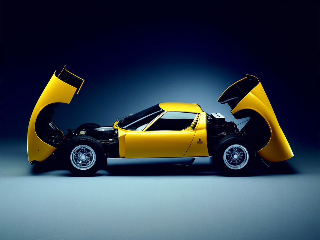 이런 페라리에게 위협이 될 만한 차로 람보르기니가 처음 내놓은 차가 바로 미우라였습니다. V12 엔진을 뒤 차축 앞에 놓은 미드십 엔진 배치 방식의 2도어 쿠페라는 형태를 통해 후대 슈퍼카의 전형을 만든 모델이 바로 미우라였습니다. 당대 가장 강력한 엔진 중 하나를 얹은 미우라는 시속 280km를 넘나드는 놀라운 성능을 냈습니다. 게다가 이태리의 유명 카로체리아 중 하나인 베르토네(Bertone)의 천재 디자이너 마르첼로 간디니(Marcello Gandini)가 디자인한 차체는 부드러운 곡선으로 강렬함을 표현한 예술적 모습이 돋보였습니다. 이제 비로소 람보르기니는 성능에 어울리는 빼어난 스타일을 지니게 되었죠.