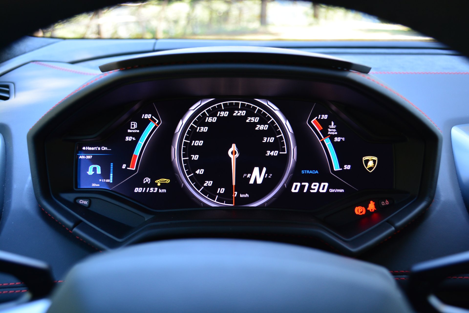 일반 도로 주행에 맞춘 스트라다 모드로 달리며 코스를 익히고 난 뒤, 좀 더 성능을 직설적으로 표현하는 스포트 모드로 바꾸고 좀 더 속도를 높여 봅니다. 스티어링 휠은 더 무거워지고 변속은 더 빨라지면서 엔진 소리는 더 자극적으로 다가옵니다. 충분히 달아올라 제 성능을 발휘하는 카본 브레이크 디스크는 조금 전보다 더 늦게 브레이크를 밟아도 정확하게 속도를 줄여 줍니다. 앞서 달리는 아벤타도르의 속도가 더 빨라졌지만 따라잡기에는 무리가 없고, 속도가 빨라진만큼 복잡한 코스의 구간구간이 더 빠르게 다가왔다가 지나갑니다.