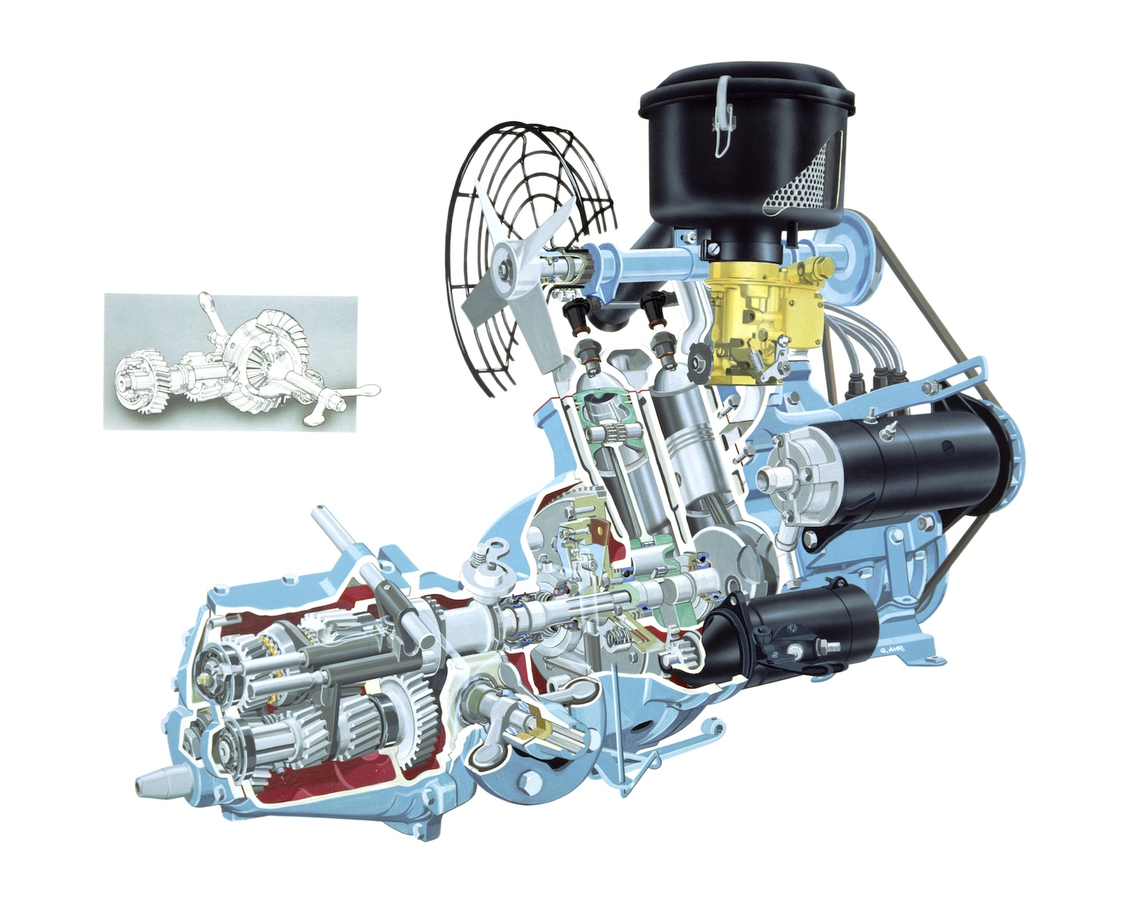 또한 초기 모델에서는 라디에이터가 변속기 위, 즉 엔진 뒤에 놓여 있는 것이 독특했다. 1965년형 모델부터 라디에이터의 위치가 엔진 앞으로 바뀌었는데, 앞으로 더 큰 엔진을 얹을 수 있는 공간을 마련하려는 의도였다. 이런 구조 변화가 차의 앞모습을 크게 바꾸는 페이스리프트로 이어졌다. 라디에이터 공간을 마련하기 위해 앞 오버행이 더 길어지면서 보닛과 앞 펜더도 더 돌출되었고, 가로로 넓어진 라디에이터 그릴 양쪽 끝에 헤드램프를 배치했다. 이후로 헤드램프가 각진 형태로 바뀐 데 이어 라디에이터 그릴 가운데에 큰 사각형 부분을 더하는 등 외모 변화가 몇 차례 더 있었지만 기본 차체 형태는 1980년에 생산 중단될 때까지 그대로 이어졌다.