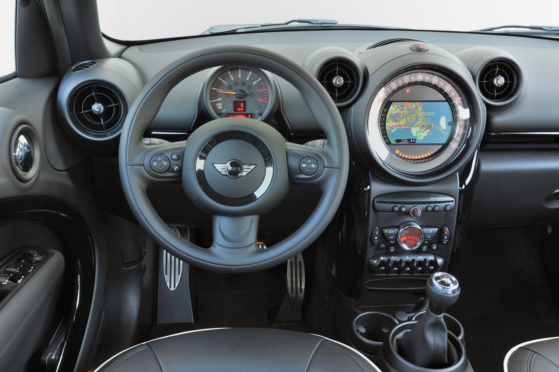 어느 곳을 보아도 동그라미를 발견할 수 있는 실내도 여전히 재미있습니다. 큰 틀은 이전과 같으면서 작은 손질로 좀 더 진지한 분위기와 편리함을 더한 것이 새 컨트리맨 실내의 특징입니다. 속도계와 엔진 회전계 등 주요 계기의 배경이 회색으로 바뀌어 스포티한 느낌을 주고, 인포테인먼트 시스템의 멀티미디어 연결기능이 보강되었습니다. 시승하는 내내 대시보드 스크린에 표시된 스웨덴 지도는 앞좌석 사이 콘솔에 넣어둔 스마트폰으로부터 데이터를 받은 것이었습니다. 구석구석 좀 더 세련된 소재를 사용한 것과 방음 처리를 보강해 실내로 들어오는 소음에서 거친 느낌이 조금 줄어든 것도 의미 있는 변화입니다.