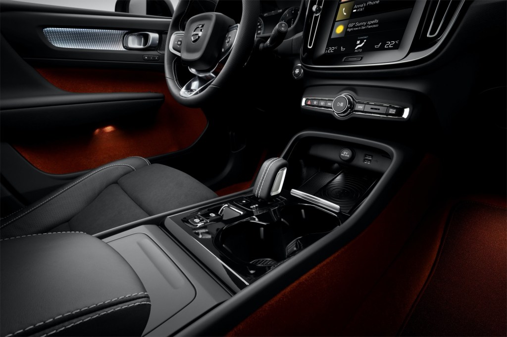 앞좌석 공간은 비교적 넉넉하다. 바닥은 낮지만 좌석은 앉는 부분이 높아서 SUV를 타고 있다는 느낌이 뚜렷하다. 운전석에 앉으면 전형적인 볼보차 디자인의 3 스포크 스티어링 휠과 그 너머에 있는 풀 LCD 계기판이 눈에 들어온다. 스티어링 휠 양쪽 스위치는 몇 번 써보면 금세 기능에 익숙해지고, 가로로 뻗은 스포크 뒤에는 수동 변속용 패들이 있다. 패들 표면은 금속이지만 손가락 닿는 부분은 고무로 처리해 고급스러운 느낌이다. 계기판은 왼쪽 속도계와 오른쪽 엔진회전계 사이에 다양한 정보를 선택해 표시할 수 있다. 센터 콘솔은 높이 솟아 있고, 가죽으로 감싼 전자식 기어 레버는 윗급 모델들보다 작고 단순한 디자인이다. 기어 레버 앞에는 스마트폰 무선 충전장치가 있는 수납공간과 USB 포트, 12볼트 소켓이 있어 모바일 기기를 두고 쓰기 편리하다. 기어 레버 옆의 컵 홀더와 앞좌석 사이의 콘솔 박스도 비교적 넉넉한 편이다.