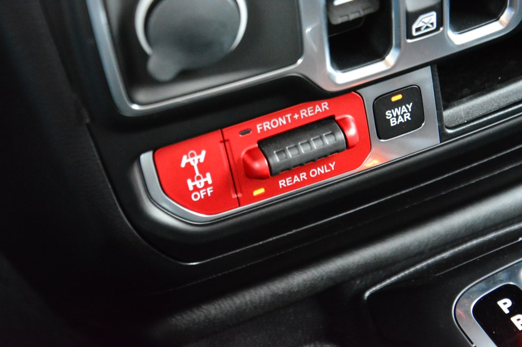 네바퀴 굴림 장치도 사하라에는 셀렉트랙(Selec-Trac)이, 루비콘에는 록트랙(Rock-Trac)이 쓰인다. 두 장치 모두 평소에는 뒷바퀴를 굴리다가 필요할 때에만 네바퀴 굴림으로 전환할 수 있는 파트타임 네바퀴 굴림 방식이다. 기어 레버 오른쪽에 있는 선택 레버를 이용해 기계식으로 조작하는 전통적 방식이지만, 이전에는 없던 4륜 고속 기어 상태에서 자동으로 구동력을 배분하는 기능(4H Auto)이 추가되었다. 록트랙에는 셀렉트랙에 없는 앞뒤 디퍼렌셜 잠금 기능과 스웨이바 해제/체결 기능이 있고, 저속 기어비가 더 크다. 이 기능들이 오프로드에서 갈 수 있는 영역과 그렇지 않은 영역을 판가름한다고 해도 지나치지 않다.