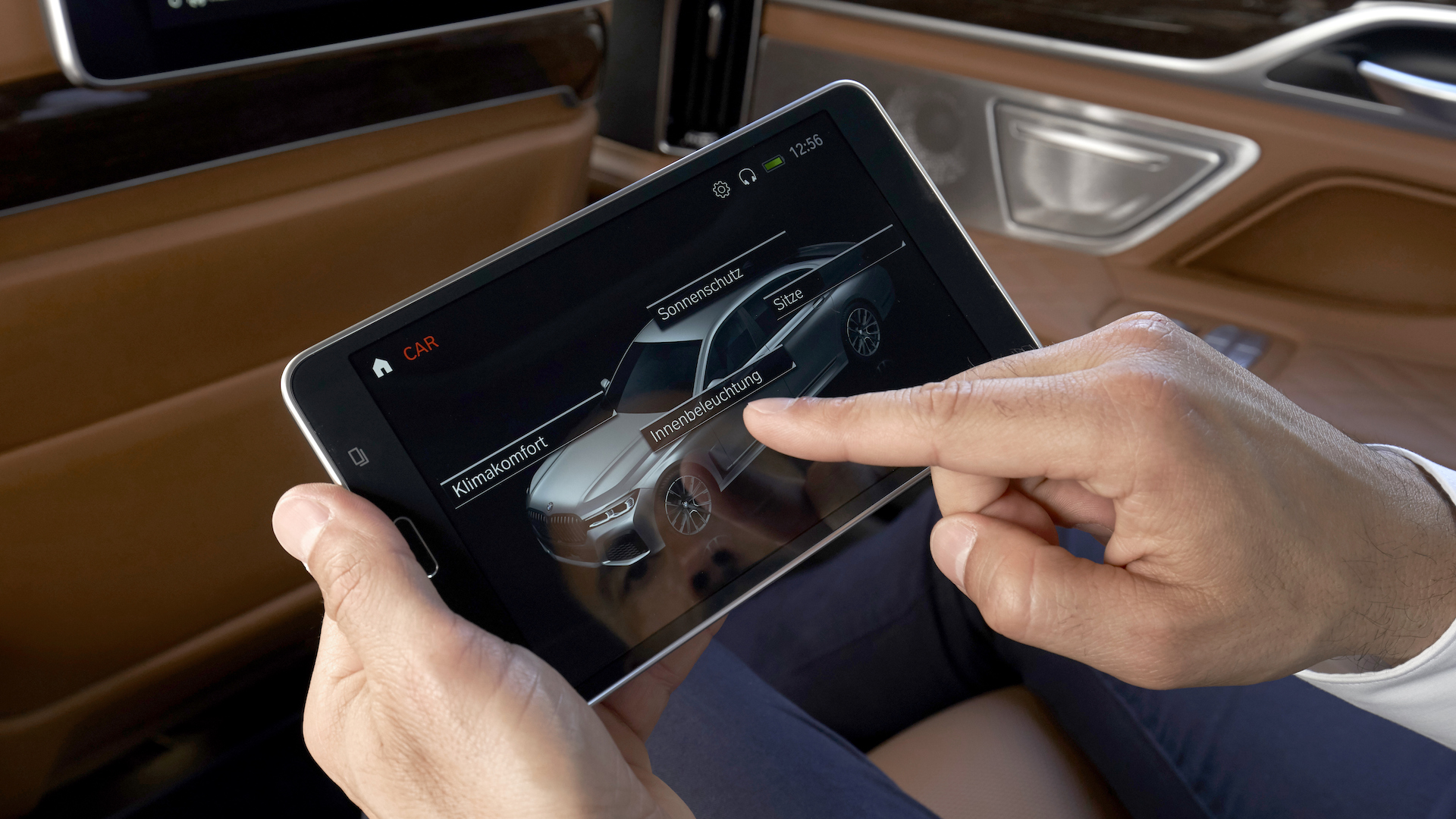 뒷좌석 편의장비는 무척 화려하다. 앞좌석 등받이 위에는 뒷좌석을 위한 10인치 풀 HD 멀티미디어 디스플레이가 달려 있고, 직접 스크린을 터치하거나 뒷좌석 접이식 팔걸이에 있는 태블릿을 사용해 조절할 수 있다. 스마트폰을 등록하면 미러링 기능을 이용해 스마트폰의 멀티미디어 콘텐츠를 대형 화면으로 볼 수도 있다. 조절할 수 있는 기능과 인터페이스는 터치 스크린과 태블릿에 일부 차이가 있지만 기본적으로는 태블릿을 이용하면 모든 기능을 조절할 수 있다.