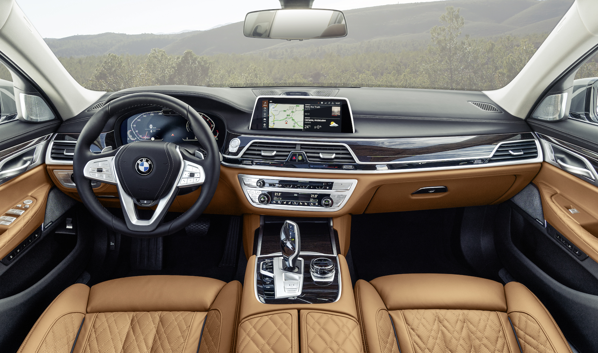 스티어링 휠의 다기능 버튼, 전자식 기어 레버와 주행 모드 선택 스위치, 아이드라이브(iDrive) 컨트롤러의 조작방식과 조작감도 더 깔끔하게 개선되었다. 인포테인먼트 시스템에 직접 손을 대지 않고 허공에서 손을 움직여 기능을 조절하는 제스처 컨트롤은 인식 가능한 동작이 몇 가지 추가되었다고 하는데, 시승 중에는 확인해 보지 못했고 좀처럼 쓰게 되지 않는다. 오디오는 바워스 앤 윌킨스 시스템이 쓰인다.