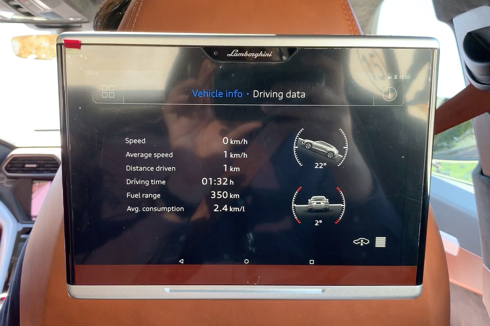 뒷좌석으로 자리를 옮기면 우루스의 의외성을 느낄 수 있다. 뒤로 갈수록 낮아지는 지붕선 때문에 답답할 거라 예상했지만, 오히려 머리 위와 무릎 공간 모두 비좁다고 할 수준은 아니다. 앉는 부분이 낮고 좌석을 깊이 파놓은 덕분이다. 앞좌석만큼은 아니어도 스포티한 차에 타고 있다는 느낌이 물씬하다. 앞좌석 뒤에 달린 모니터는 엔터테인먼트 기능은 물론, 차의 주행상태를 확인할 수 있는 정보도 확인할 수 있다. 람보르기니가 오랜만에 내놓은 4도어 모델인 만큼 뒷좌석의 호화로움에도 신경을 쓴 것이다. 뒷좌석 등받이 너머의 적재공간은 차 크기에 비하면 넉넉한 편은 아니지만 일상 생활에 쓰기에는 충분하다.