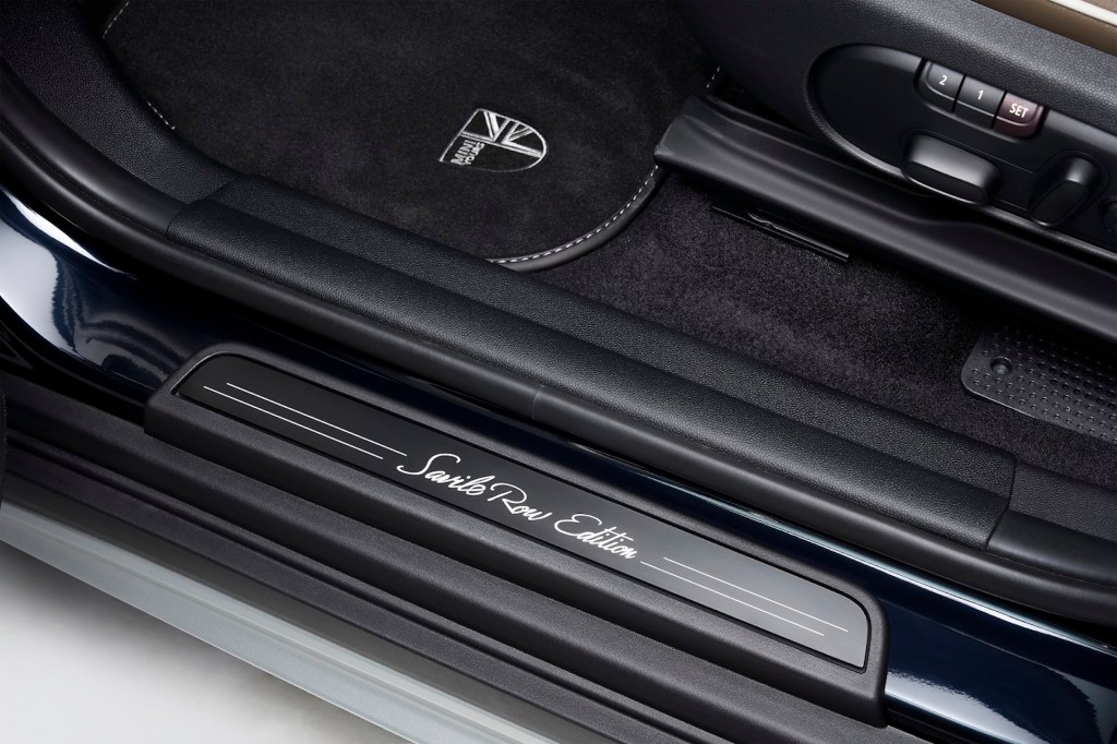 새빌 로 에디션은 영국에 기반을 둔 세계적 원단 브랜드 스카발(Scabal)과 협업해 만들었으며, 스카발의 2020년 가을/겨울 컬렉션에서 영감을 얻어 맞춤 정장을 연상시키는 요소들로 꾸몄다는 것이 미니의 주장이다. 스카발의 영국 플래그십 스토어도 새빌 로에 있다.