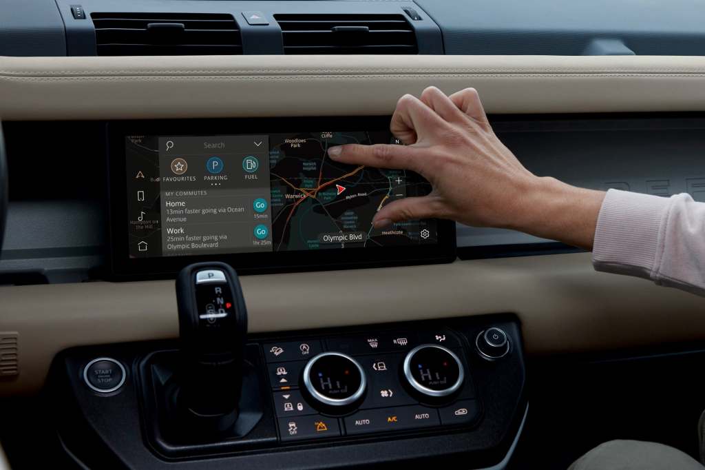인포테인먼트 시스템은 랜드로버에서 첫선을 보이는 PIVI 프로(Pro)다. 이 시스템은 퀄컴 스냅드래곤 프로세서와 LTE 모뎀 두 개를 활용해 조작 응답성 및 네트워크 연결 속도가 빠르고 다양한 커넥티비티 관련 기능을 갖춘 것이 특징이다. 랜드로버는 이 시스템을 활용해 SOTA(Software-Over-The-Air, 소프트웨어 무선 업데이트) 기능을 구현했다. 스마트폰 연동 기능은 애플 카플레이와 안드로이드 오토를 모두 지원하고, SK텔레콤과 공동 개발한 T맵 내비게이션이 기본 설치되어 있다.