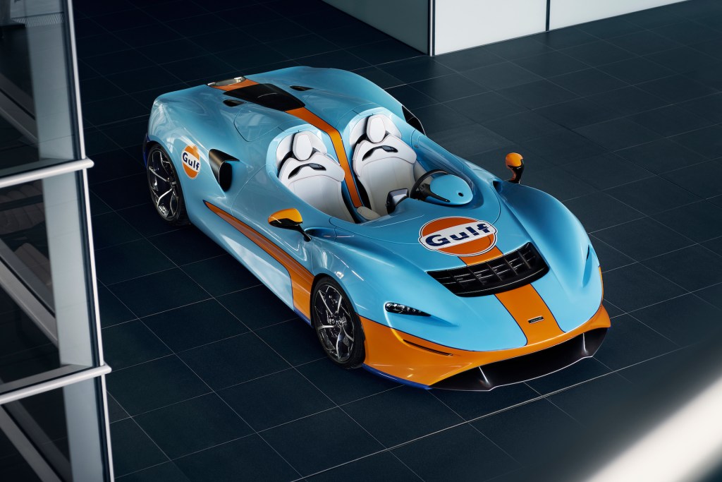 맥라렌이 과거 모터스포츠에서 끈끈한 협력 관계를 맺었던 정유 브랜드 걸프(Gulf)의 상징색으로 칠한 엘바(Elva)를 공개했습니다.