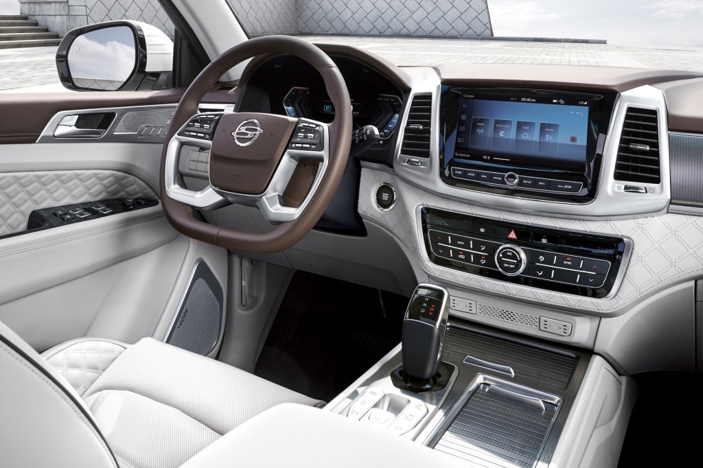 내부는 큰 틀은 바뀌지 않았지만, 동력계 및 구동계 변화와 더불어 센터 콘솔 주변이 달라졌고 새로운 4스포크 스티어링 휠을 다는 한편 상위 트림에 12.3인치 풀 LCD 계기판이 새로 들어간다. 센터 콘솔에는 전자식 기어 레버를 달면서 주행 관련 기능을 버튼식으로 바꿔 기어 레버 뒤쪽으로 옮겼고, 컵 홀더 위치도 기어 레버 옆으로 옮기면서 슬라이딩식 덮개를 달았다. 내장재 장식(그레인) 패턴도 바뀌었다. 스위치를 터치식으로 바꾸면서 오버헤드 콘솔 디자인도 달라졌다. 2열 좌석은 쿠션을 바꾸고 높이를 조절해 착좌감을 개선했다. 2열 좌석에는 USB 포트 두 개에 12V 소켓을 더했다.