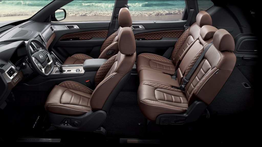 쌍용 올 뉴 렉스턴 | 차체형식 5도어 5/7인승 왜건 길이x너비x높이 4850x1960x1825mm 휠베이스 2865mm 엔진 I4 2.0L 디젤 터보 최고출력 202마력 최대토크 45.0kgm 변속기 자동 8단 굴림방식 뒷바퀴굴림(FR)/네바퀴굴림(4WD) 공차중량 2060~2180kg 복합연비 11.1~11.6km/L CO2 배출량 167~175g/km 에너지소비효율 3~4등급 기본값 3,695만~4,175만 원(뒷바퀴굴림 모델)/3,888만~4,975만 원(네바퀴굴림 모델)(모두 개별소비세 인하분 적용 기준)