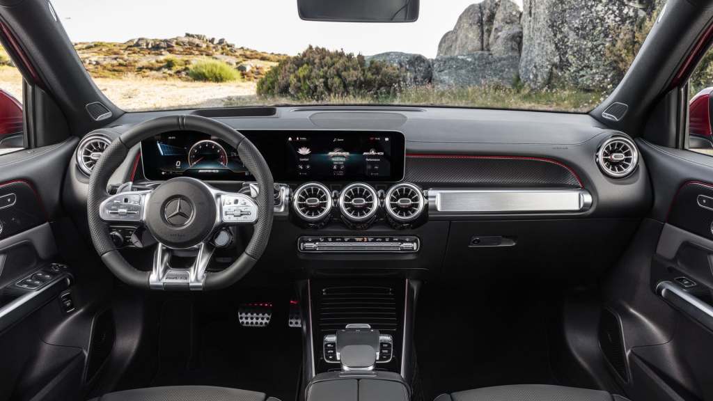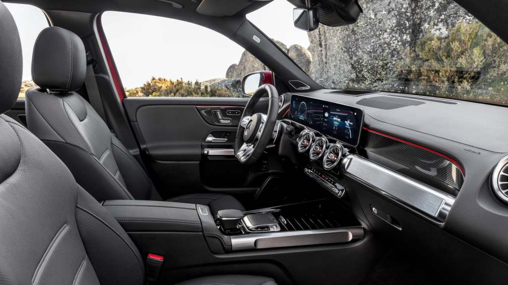 실내 공간과 디자인도 GLB-클래스에 AMG 고유의 디자인 특징을 담았다. 10.25인치 스크린을 쓰는 계기판과 인포테인먼트 디스플레이는 AMG 전용 MBUX가 적용되었다. 가죽 재질로 마감한 D컷 스티어링 휠과 스포츠 시트에는 빨간색 봉제선을 넣었다.
