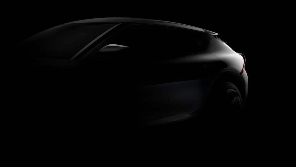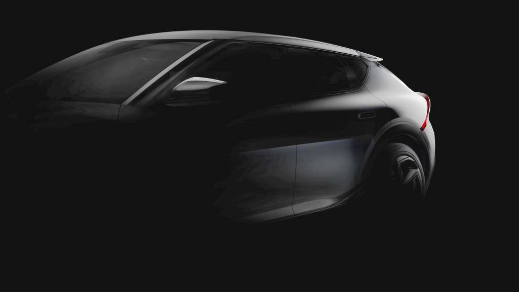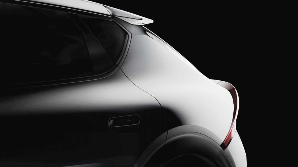 옆모습 사진입니다. 실루엣만 남기고 모두 어둡게 처리했지만, 보닛이 시작하는 부분을 많이 낮춘 것을 빼면 전반적 형상은 현대 아이오닉 5와 많이 비슷합니다.