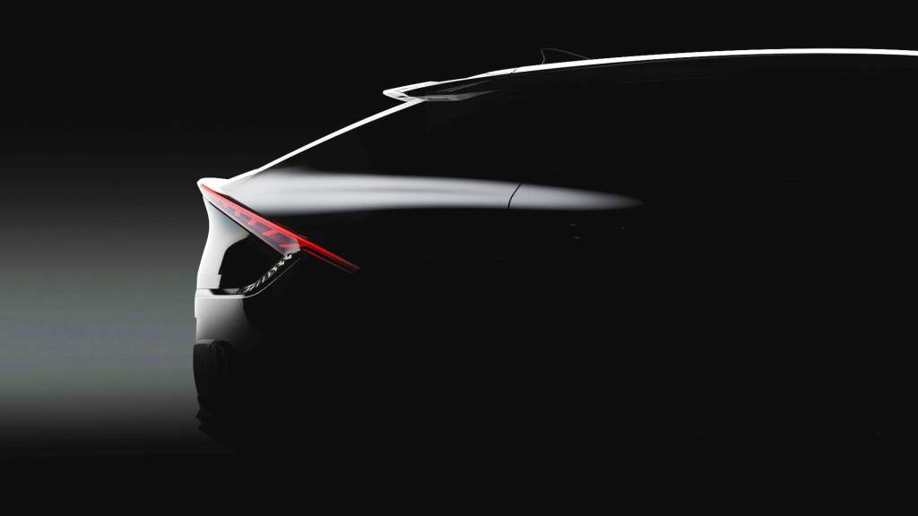 공개된 전측면 사진입니다. 보닛의 굴곡이 더 뚜렷하게 드러나고, 보닛 끝 부분에는 새로운 기아 로고를 붙였네요. 오각형 틀 안에 담긴 헤드라이트 형태도 보이는데, 빛을 연출해 만든 그림자인지는 모르겠지만 양쪽 헤드라이트 사이에 움푹 들어간 부분이 있는 걸 알 수 있습니다.