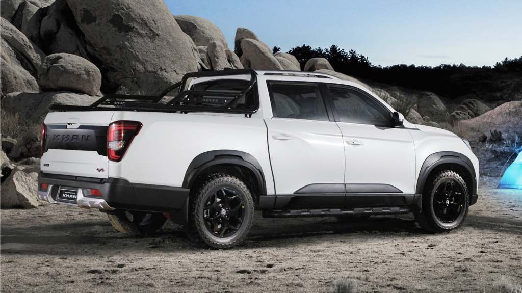 외부는 앞서 선보인 올 뉴 렉스턴과 앞모습을 뚜렷하게 차별화했다. 앞 범퍼의 넓은 부분을 차지하는 그릴은 굵은 가로 막대를 나란히 넣었고, 더 뉴 렉스턴 스포츠 칸은 그릴 위에 ‘KHAN’ 레터링을 넣었다. 주간 주행등은 범퍼 좌우 가장자리에 수직 방향으로 길게 배치했다. 테일램프는 면 발광 LED를 넣어 세부 디자인을 손질했다(프레스티지 트림 이상). 아울러 휠 아치와 도어 아래, 테일게이트 가운데에는 새로운 디자인의 무광 검정색 가니시를 더했다(익스테리어 패키지). 사이드 스텝은 너비를 좁혀 노면 간섭을 줄였고, 휠 디자인도 바꿨다.