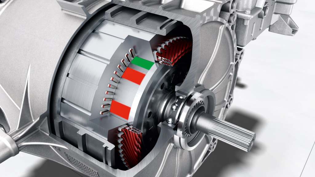 전기 모터는 앞 차축과 뒤 차축에 각각 하나씩 결합되어 전자제어 네바퀴굴림 시스템을 이룬다. 타이칸 터보 S에 쓰인 영구 여자 동기식(permanently excited synchronous) 전기 모터는 헤어핀 와인딩(hairpin winding) 스테이터 코일(고정자 권선)을 써, 같은 크기의 전기 모터로 더 큰 출력과 토크를 낼 수 있는 것이 특징이다.