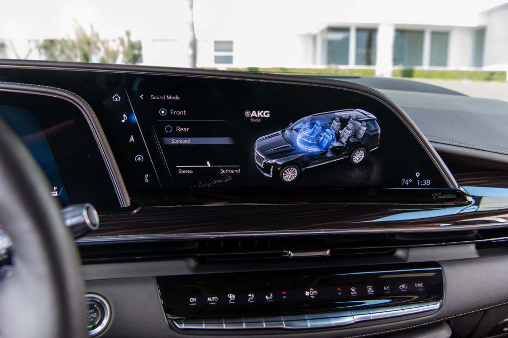 결론: 캐딜락 에스컬레이드의 커브드 OLED 디스플레이는 38인치짜리 한 개가 아니라, 크기가 다른 세 개가 따로 떨어져 있는 것임.