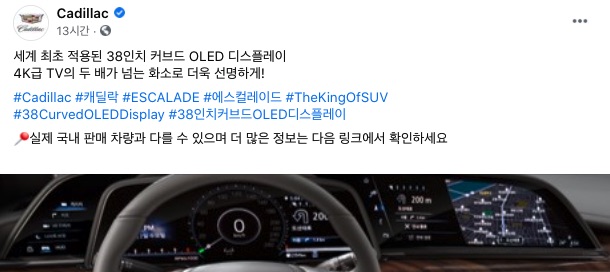 위 이미지는 캐딜락 공식 페이스북 계정으로 올라온 게시물입니다.