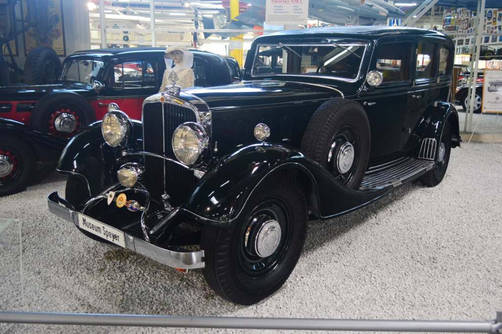 진스하임 박물관에 전시된 또 하나의 SW 38 모델은 1939년형입니다. 뒤 도어 뒤쪽에 뒷좌석이 있고 지붕 전체를 열고 닫을 수 있는 컨버터블 리무진 형태의 호화로운 모델입니다. 박물관 설명에는 차체 형식을 ‘Transformations – Convertible’이라고 써 놨는데요. 접이식 지붕을 1열 좌석 위만 열 수도 있고 전체를 열 수도 있는 구조라고 합니다. 어쨌든 운전사를 두고 차주는 뒷좌석에 앉는 형태의 고급차라는 점은 분명합니다.
