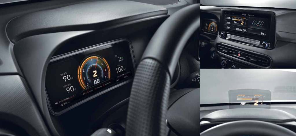 계기판 그래픽은 엔진 회전계와 속도계를 원형으로 표시하는 디자인과 더불어 하나의 원형 그래픽을 중심으로 엔진 회전수, 속도, 기어 단수, 변속 표시등을 표시하는 ‘원 서클 디자인(one circle design)’도 선택할 수 있다. 원 서클 디자인 그래픽에서는 고성능 차에서 운전자에게 도움이 되는 엔진 오일 온도, 냉각수 온도, 토크, 터보 부스트 압도 함께 표시되고, 주요 성능 관련 정보는 헤드업 디스플레이에도 표시된다. 인포테인먼트 시스템에는 트랙을 한 바퀴 주행할 때 걸리는 시간을 기록하는 랩 타임 측정기능과 트랙 주행 동선을 추적해 기록하는 N 트랙 맵(N Track Map) 기능이 있어 주행 기록 분석에 활용할 수 있다.