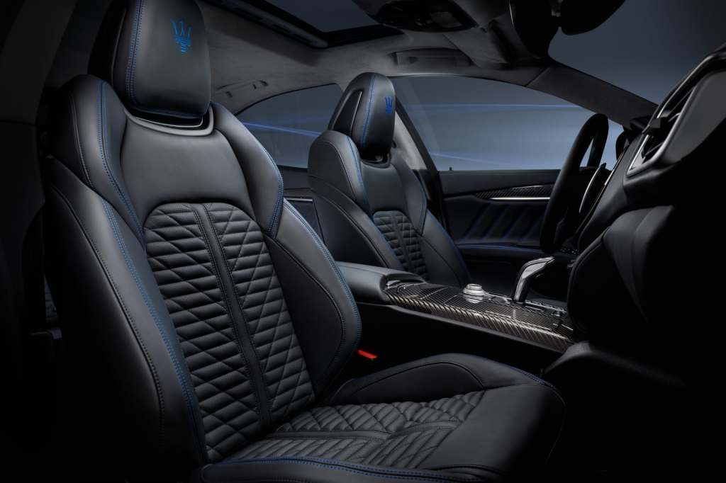 기블리 하이브리드는 내장재에 파란색 재봉선과 파란색 장식 요소를 넣었고, 시트를 세 가지(검정색 가죽, 프리미엄 가죽, 피에노 피오레) 중 하나를 선택할 수 있다. 기블리 트로페오는 트로페오 모델 전용 디자인을 반영한 계기판과 대시보드 상단 아날로그 시계, 트라이던트 엠블럼과 트로페오 로고를 결합한 입체 그래픽을 넣은 헤드레스트를 적용했고 피에노 피오레 천연가죽을 사용한 스포츠 시트와 함께 빨간색 재봉선을 넣었다. 아울러 트로페오 모델은 내장재 색을 검정색, 빨간색, 연갈색(탠) 중 하나로 선택할 수 있다.