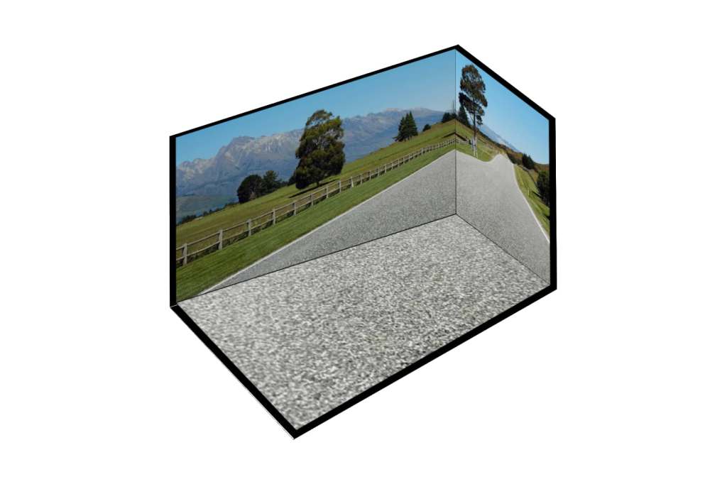 처음에는 생각이 있어 바닥을 부등변 사각형으로 만들었는데, 실제로 만들어보니 예상했던 그림이 나오질 않았습니다. 그래스 최종 버전에서는 바닥을 직사각형으로 단순하게 바꿨죠. 사진도 저작권 문제 없도록 제가 직접 찍은 것으로 바꿨습니다. 틀을 만들어 놓았으니 필요할 때 내키는 대로 배경을 바꿔 넣으면 다른 버전으로도 만들 수 있습니다.