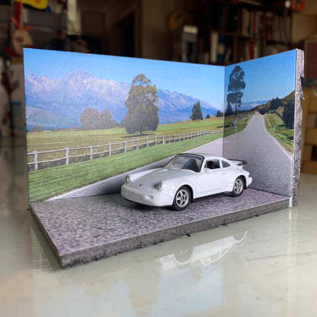 실제로 미니어처 자동차를 올려 놓으면 이런 그림이 나오고요. 확인용으로 올려놓은 것은 웰리(Welly)에서 나온 1/64 스케일 포르쉐 964 터보 다이캐스트 모형입니다.
