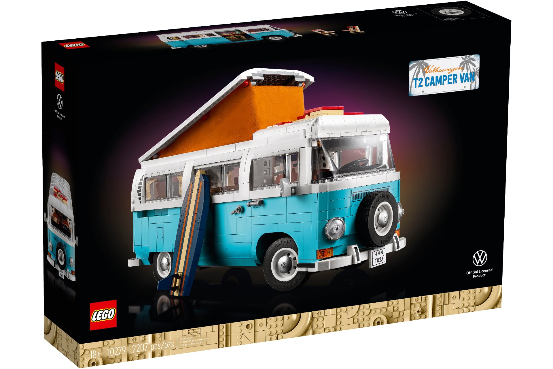 2015년에 나온 T1 캠퍼밴에 이어, 이번에는 그 다음 세대 마이크로버스인 T2 캠퍼밴이 크리에이터 엑스퍼트 시리즈로 나왔습니다. 1세대 모델보다 밋밋한 앞모습을 재현했고요. 전작과 마찬가지로 실내 세부 재현과 액세서리가 돋보입니다. 특히 캠핑카의 특징을 살린 지붕과 내부의 각종 가구, 따로 마련한 서핑 보드와 의자 등은 마이크로버스가 중요한 역할을 했던 서핑과 히피 문화를 느낄 수 있는 소품이기도 합니다. 소품들의 색깔만 봐도 알 수 있죠.