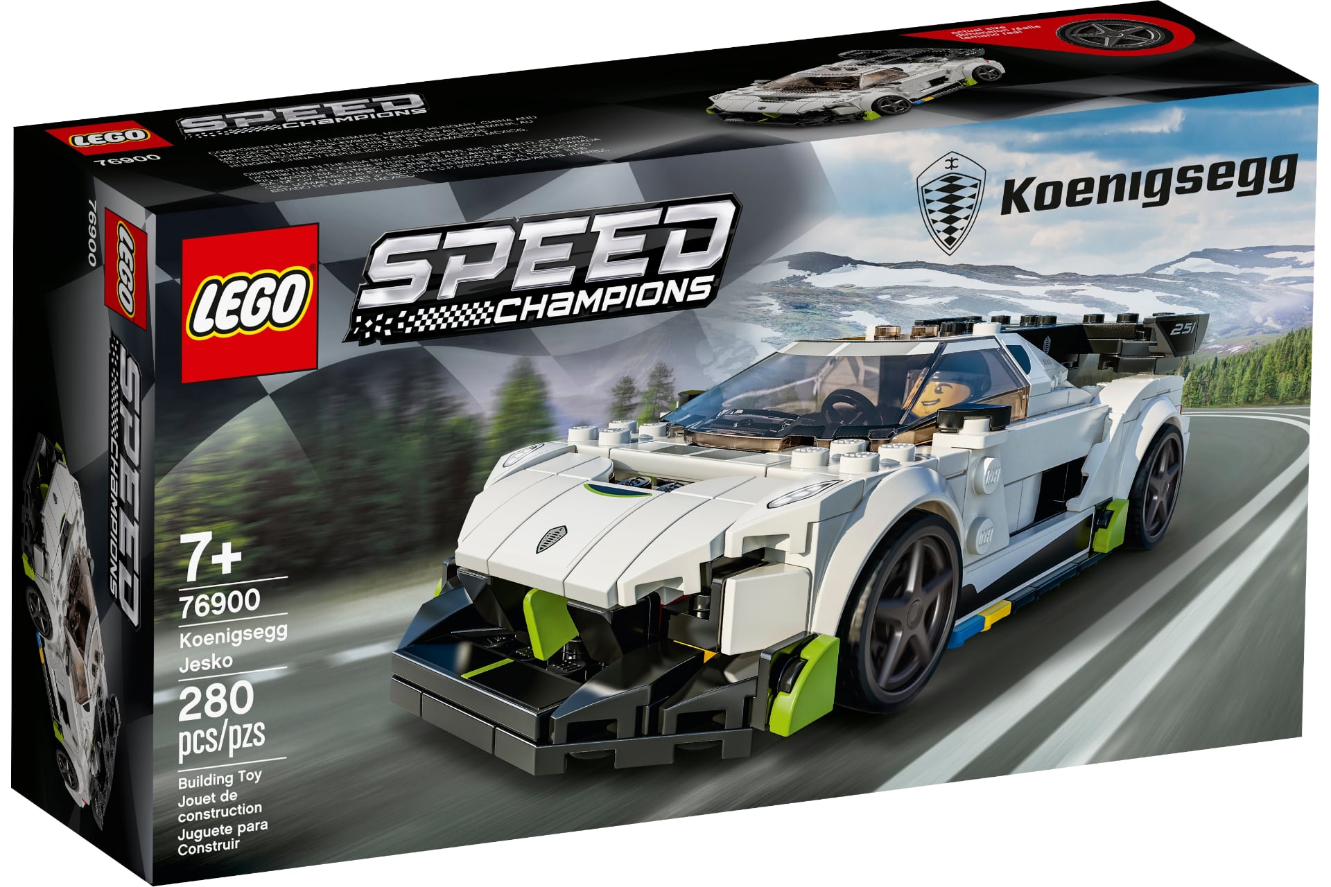 코닉세그의 최신 2인승 하이퍼 스포츠카, 제스코를 재현한 모형입니다. 전체 형태를 단순화하면서도 앞 에어댐과 대형 리어 스포일러 등 특징적 요소를 돋보이게 만든 것이 특징입니다. 스피드 챔피언 시리즈 단품 구성의 흐름을 따라, 헬멧과 머리를 바꿀 수 있는 인형 하나와 휠 디자인을 바꿀 수 있는 별도 부품이 함께 들어 있습니다.