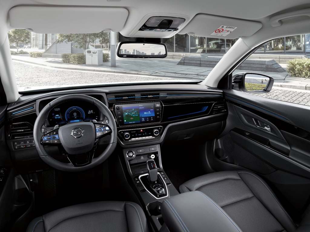 내부도 기본 디자인과 구성은 코란도와 같습니다. 다만 모든 트림에 전자식(SBW) 기어 레버와 전자식 주차 브레이크 스위치, 12.3인치 풀 디지털 클러스터(LCD 계기판)와 양방향 풀 미러링 기능이 포함된 인포테인먼트 터치스크린(E3 트림은 8인치 기본에 9인치 선택, E5 트림은 9인치 기본)이 기본으로 들어갑니다.