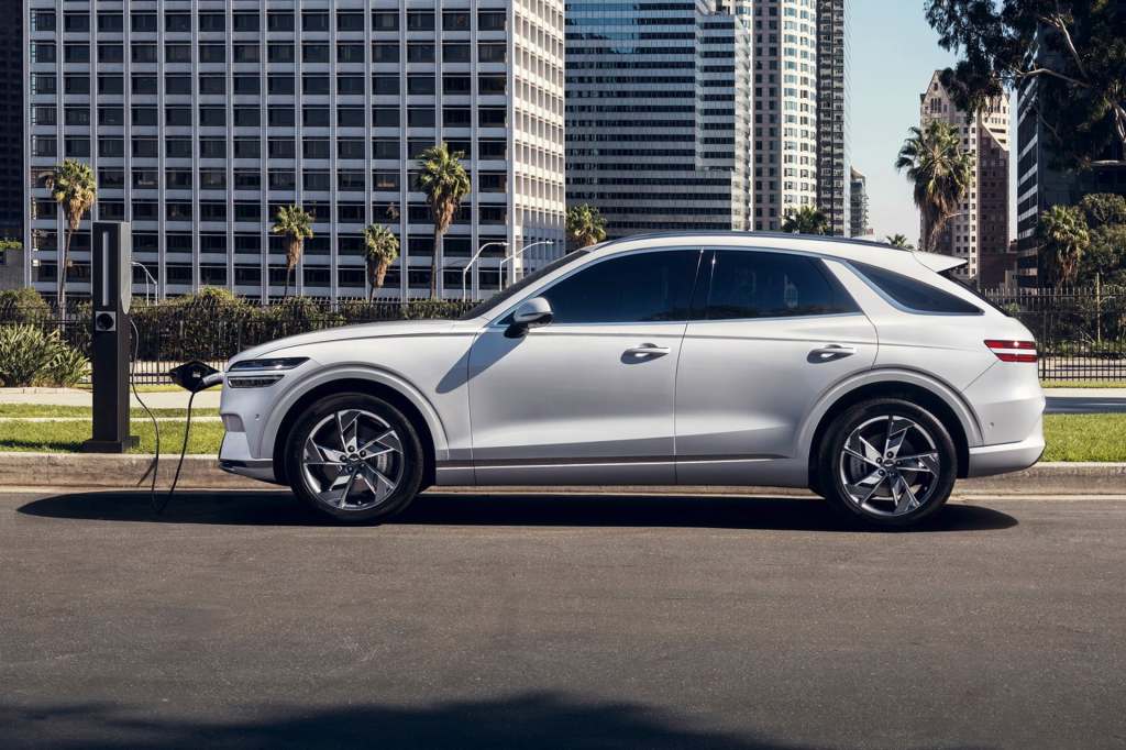겉모습은 GV70과 거의 같지만, 전동화 모델임을 알 수 있는 특징들이 반영되었습니다. G80 전동화 모델처럼 구멍이 뚫리지 않은 전기차 전용 지매트릭스(G-matrix) 패턴 그릴을 달았고, 앞뒤 범퍼 형태가 다릅니다. 당연히 뒤 범퍼에는 배기구가 없고요. 휠(19인치 기본, 20인치 선택)도 전동화 모델 전용으로 디자인한 것을 답니다.