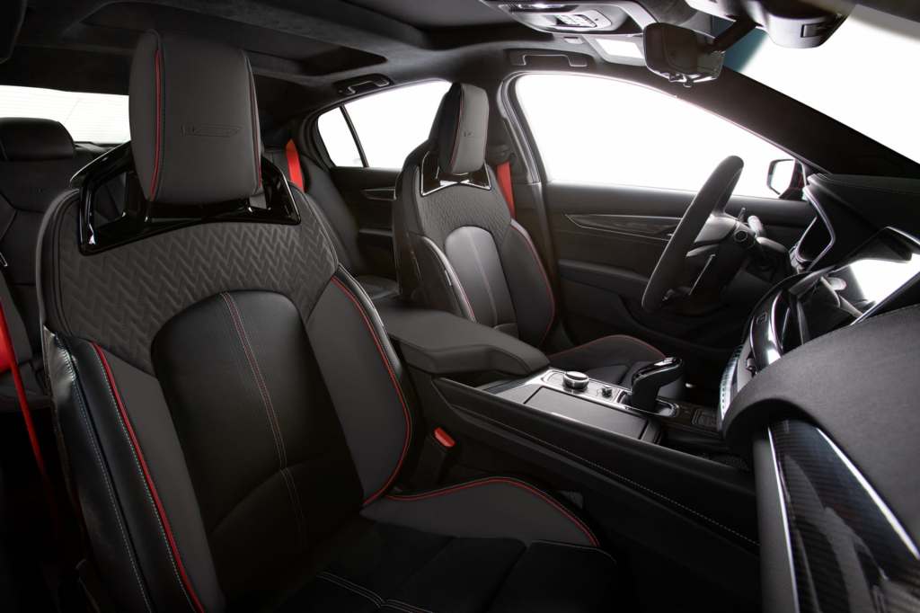 내부는 스티어링 휠 정렬 상태를 확인할 수 있는 빨간색 센터 스트라이프와 고유의 일련번호가 표시된 퍼포먼스 스티어링 휠, 카본 파이버(탄소섬유) 장식, V 시리즈 블랙윙 전용 퍼포먼스 버킷 시트(Performance Bucket Seat), 토치 레드(Torch Red) 색 안전벨트 등을 갖춘 것이 특징입니다.