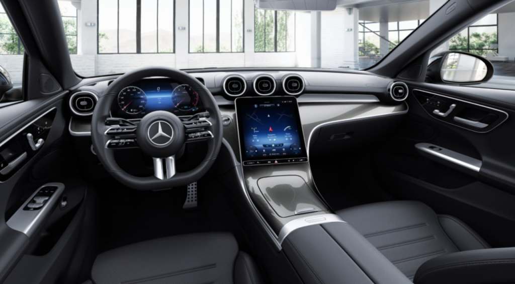 내부 디자인은 이전 세대 C-클래스의 디자인 요소를 이어받으면서 원형 공기 배출구를 가로로 넓은 모양으로 바꾸는 등 변화를 주었고, 세로형 11.9인치 인포테인먼트 디스플레이를 비롯해 넓은 대시보드 장식 등 더 뉴 S-클래스와 비슷한 분위기를 내도록 디자인했습니다. 그러면서 인포테인먼트 디스플레이를 운전석 쪽으로 6도 틀어 배치해 스포티한 분위기를 냈고, 디스플레이 아래쪽에는 지문 스캐너가 있어 보안 걱정 없이 개인화 설정을 쉽게 활용할 수 있도록 했습니다. 인포테인먼트 시스템은 더 뉴 S-클래스를 통해 처음 선보인 2세대 MBUX(Mercedes-Benz User Experience)가 적용됩니다.