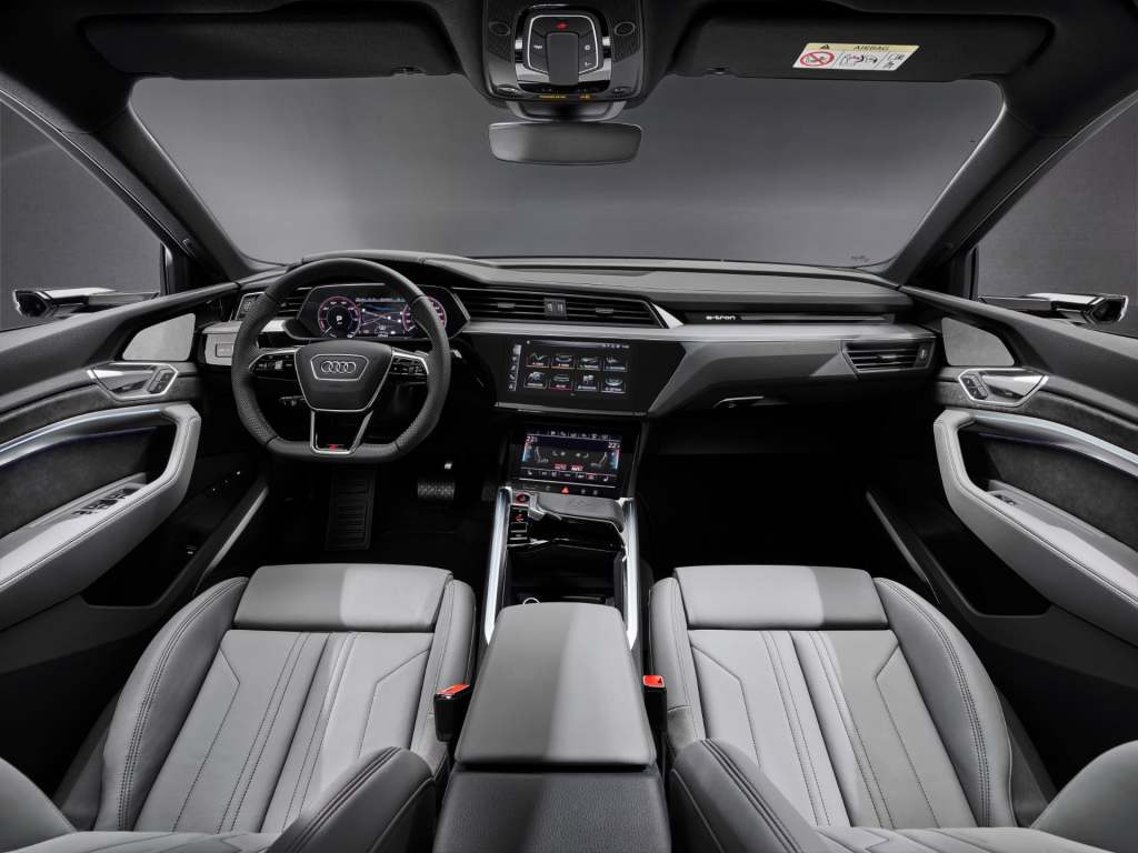 외부에는 S 모델 전용 블랙 패키지가 반영되어, 앞뒤 범퍼 장식과 그릴, 루프 레일과 윈도우 몰딩(유리창 테두리) 장식적 요소를 검은색으로 통일했습니다. 앞쪽 그릴과 뒤쪽 테일게이트에는 S 배지가 붙고요. e-트론 S에는 21인치 5-Y-스포크-로터 스타일 휠이, e-트론 S 스포트백에는 22인치 5-암 인터페렌츠(5-Arm-Interferenz) 스타일 휠이 기본으로 들어갑니다. 파노라마 선루프는 두 모델 모두 기본 사항에 포함되어 있습니다.