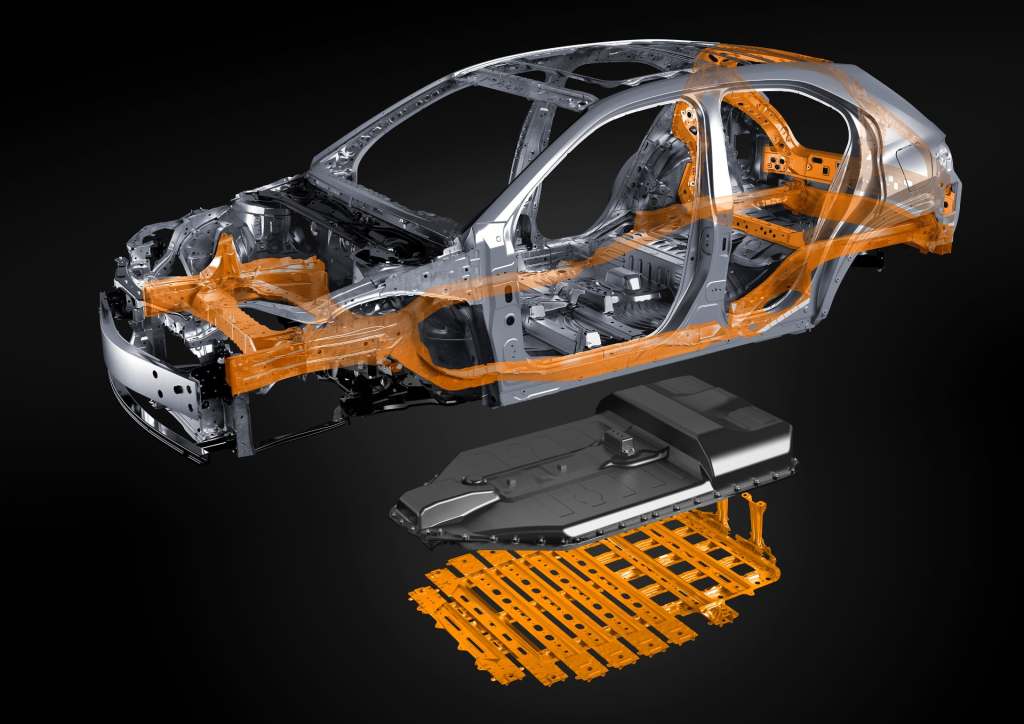 UX 300e는 다른 UX와 마찬가지로 GA-C 플랫폼을 바탕으로 만들어졌지만, 전기 동력계와 배터리 배치를 위해 부분적으로 차체 구조에 변화를 주었습니다. 용량이 54.35kWh인 고전압 리튬 이온 배터리는 차체 가운데 아래쪽에 배치했는데요. 차체 구조를 배터리 팩에 맞춰 개조하는 한편 아래쪽에 크로스멤버(가로 지지대)를 설치해 측면 충격으로부터 배터리 팩과 관련 시스템을 보호하도록 만들었습니다. 그와 더불어 배터리 배치가 바뀌면서 트렁크 공간 크기도 305L(VDA 기준)로 하이브리드 모델보다 약 41L 넓어졌습니다.