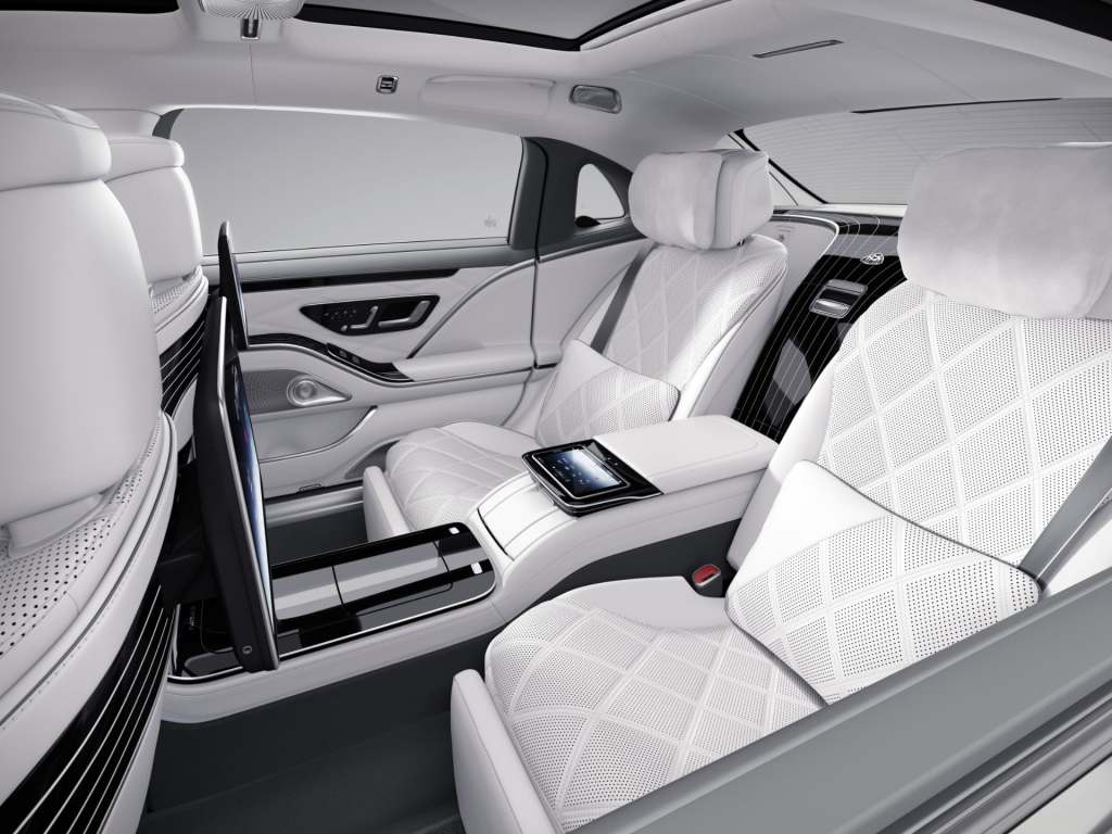 그 밖에 목과 어깨 부분에 열선이 내장된 헤드레스트, 탑승자가 뒷좌석에 앉아 문을 닫으면 자동으로 돌출되어 안전벨트 착용을 돕는 뒷좌석 벨트 피더, 경사진 곳에서 타고 내릴 때 뒤 도어를 쉽게 여닫을 수 있도록 돕는 뒷좌석 컴포트 도어, 전동식 선 블라인드, 앞좌석 뒤에 설치된 두 개의 11. 6인치 풀 HD 터치 스크린과 센터 콘솔에 수납할 수 있는 7인치 태블릿을 포함한 MBUX 하이엔드 뒷좌석 엔터테인먼트 시스템도 기본 사항에 포함됩니다.