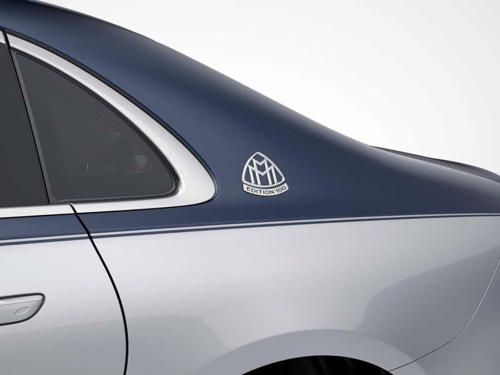 S 680 4매틱 에디션 100은 외부와 내부 모두 특별하게 꾸몄습니다. 외부는 하이테크 실버(Hightech Silver)와 노틱 블루(Nautic Blue) 색을 조합한 투톤 도색을 수작업으로 했습니다. 그리고 C필러에는 에디션 100 레터링이 포함된 마이바흐 엠블럼을 붙였고, 20인치 마이바흐 5홀 단조 알로이 휠을 달아 마무리했습니다.