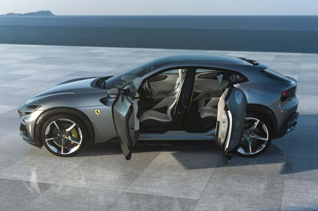 공식 발표 전까지 알려지지 않았던 사실 중 하나는 페라리 역사상 처음으로 ‘자살문(suicide door)’이라고도 불리는 코치 도어(coach door)를 달았다는 점입니다. 앞 도어 경첩은 앞쪽에, 뒤 도어 경첩은 뒤쪽에 달려 앞뒤 도어가 서로 마주보고 열리는 구조죠. 승하차 편의성을 고려한 선택이라고 하는데, 실제로 보니 뒤 도어가 열리는 각도가 상당히 큽니다. 보도자료에는 79˚라고 나와 있습니다. 앞 도어도 다른 모델들보다 5˚ 큰 63˚까지 열린다고 합니다.