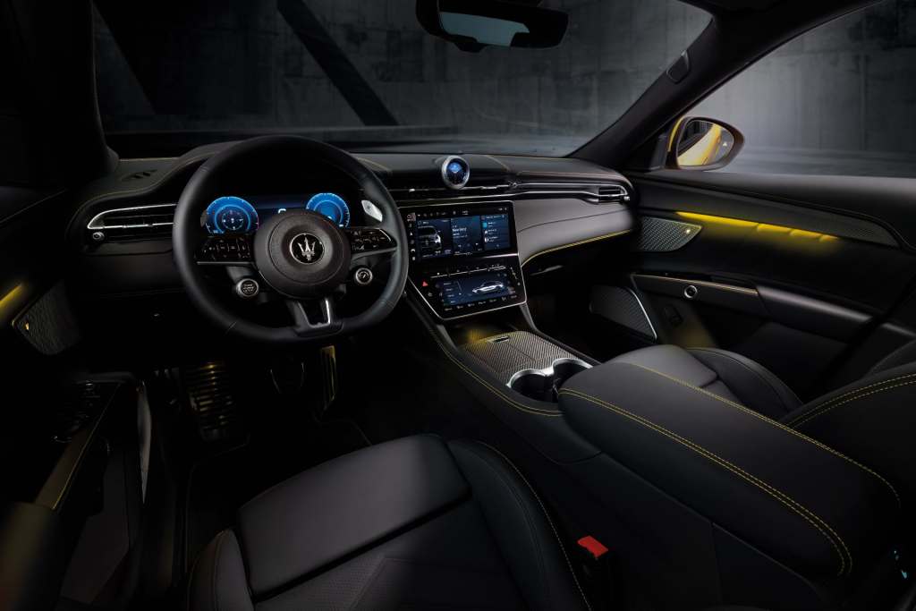 내부는 스포티한 분위기로 꾸몄습니다. 브랜드 역사상 처음으로 쓰인 디지털 시계에 운전자 취향에 맞춰 여러 기능을 선택해 표시할 수 있는 기능을 넣었고, 공기 조절을 비롯한 실내 환경 조절 기능을 모아놓은 8.8인치 컴포트 디스플레이를 마련해 12.3인치 센터 디스플레이와 함께 대부분의 기능 조절을 터치 인터페이스로 할 수 있도록 만들었습니다. 아울러 버튼식 기어 셀렉터, 헤드업 디스플레이, 전동 도어 오프닝 스위치, 소너스 파베르(Sonus Faber) 다차원 사운드 시스템 등 장비를 풍부하게 갖췄습니다.