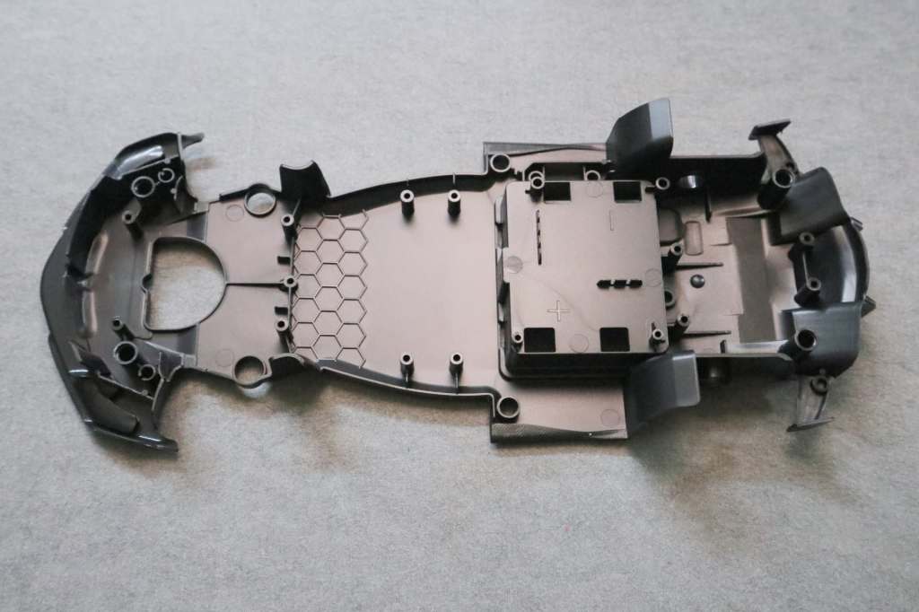 순수 모형이 아닌 RC라서 엔진룸을 비롯해 여러 부분이 단순화되었을 거라고 생각했고 실제로 RC 조종기는 다른 RC 완구에서 봤던 것들과 비슷한 모양이었습니다. 차 안에 설치하는 RC 신호 수신부와 구동계 및 스티어링 계통, 배터리 박스, 배선은 쉽게 구분해서 조립할 수 있도록 부품별로 포장이 되어 있고요. 부품들은 따로 접착제를 쓰지 않고도 끼워 맞춰 결합할 수 있는 스냅식 결합 구성입니다.