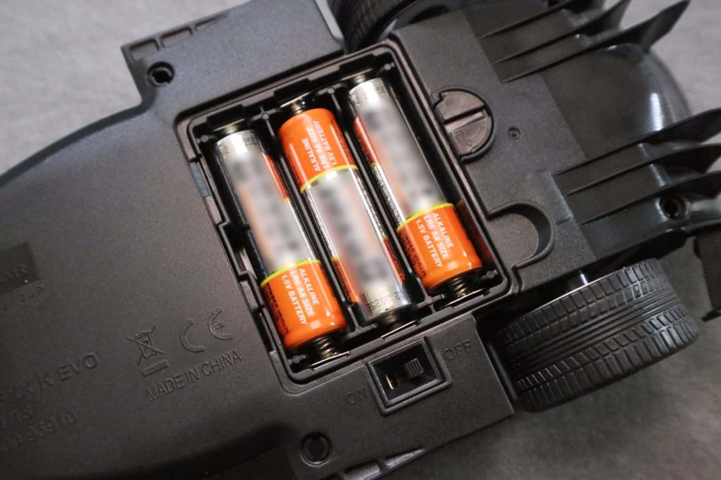 배터리는 본체와 조종기 모두 1.5V AA 규격 건전지를 쓰고요. 본체에는 세 개, 조종기에는 두 개가 들어갑니다.