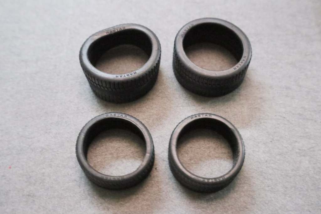 어떤 부분들은 신통할 정도로 재현을 잘 해놨는데도 ‘어쩔 수 없는 완구구나’라고 느끼게 되는 부분이 휠과 타이어입니다. 타이어는 트레드 패턴을 넣었는데 좌우 구분이 없어서 조립 후에는 패턴이 반대 방향이 되고요. 휠 안쪽으로 보이는 브레이크 디스크도 마찬가지입니다. 게다가 바퀴와 함께 회전하기까지 하죠. 브레이크 디스크만이라도 개조하고 가공해서 최소한 방향만이라도 제대로 만들껄 하는 생각이 듭니다.