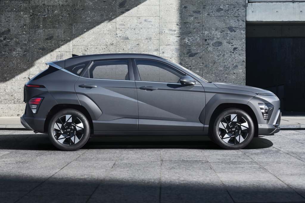 옆부분은 이전 코나와 비슷하게 바퀴 주변을 감싸는 가니시를 두드러지게 만들고, 가니시 안에 앞쪽 및 뒤쪽 컴비네이션 램프를 넣었습니다. 또한 뒤 도어 위쪽에서 앞 도어 아래쪽으로 긴 사선을 넣어, 윗급 모델인 투싼과 비슷한 분위기를 냅니다.