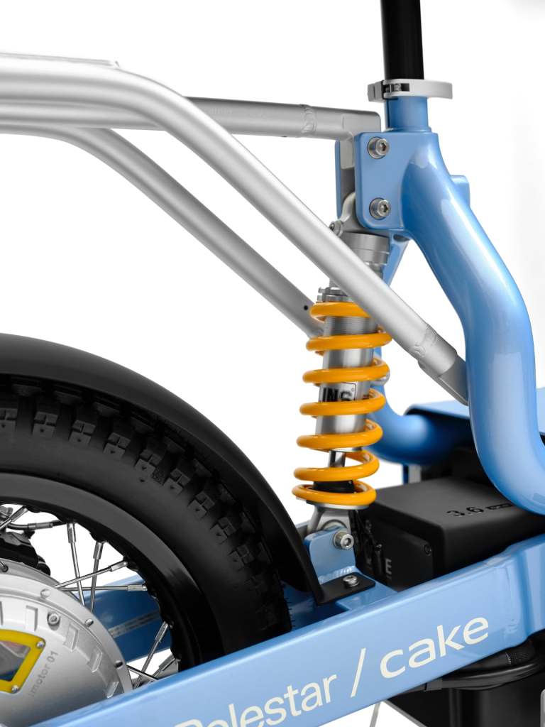 이름에서도 알 수 있듯, 이 전기 스쿠터는 케이크의 주력 제품 중 하나인 마카에 폴스타의 이미지를 담았습니다. 특히 2026년에 나올 예정인 폴스타 6의 예고편 격으로 2022년에 선보인 O2 콘셉트카에서 영감을 얻어 스카이(Sky) 색으로 차체를 칠했습니다. 배터리 팩 옆을 덮는 커버와 알루미늄 색이 돋보이는 리어 캐리어도 일반 마카와 다른 점이고요. 그리고 폴스타 차들의 헤드라이트와 비슷한 분위기를 내도록 헤드라이트 아래 방향지시등을 얇게 만들었습니다.